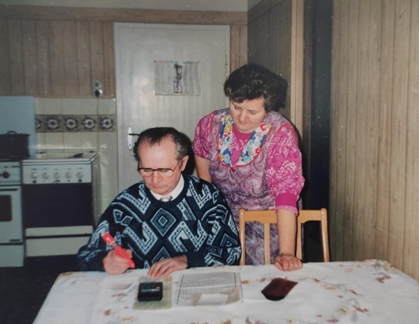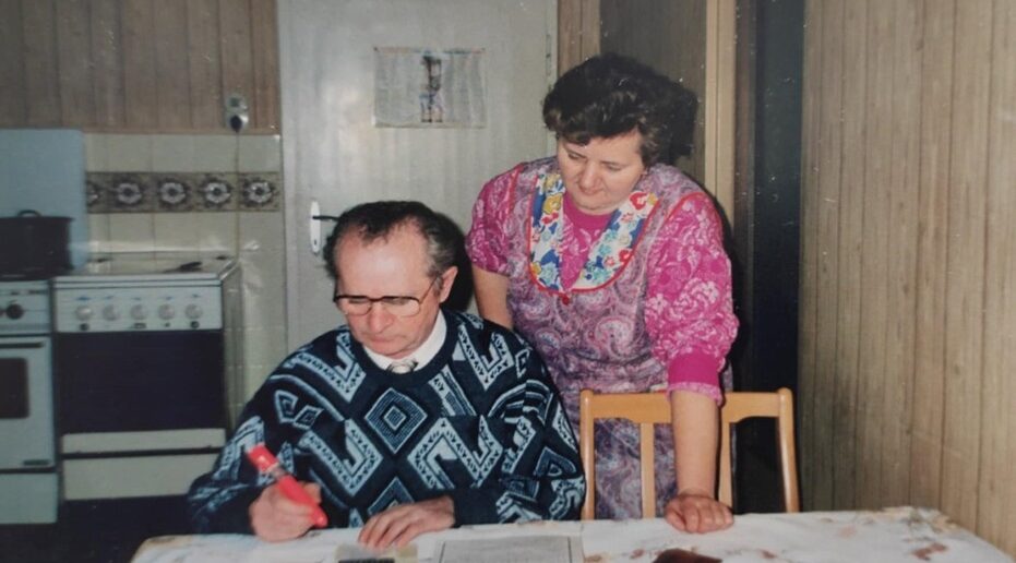 Moja ołma Anka (Anna Glinka, z domu Kałka) urodziła się 16 lipca 1949 roku w Osieku/ Łosiek. Jej rodzice, Cecylia i Wawrzyn Kałka zajmowali się gospodarstwem rolnym. Była piyrszoł z rodzyństwa, potym miała jeszcze dwóch braci, Janka i Norbeta.