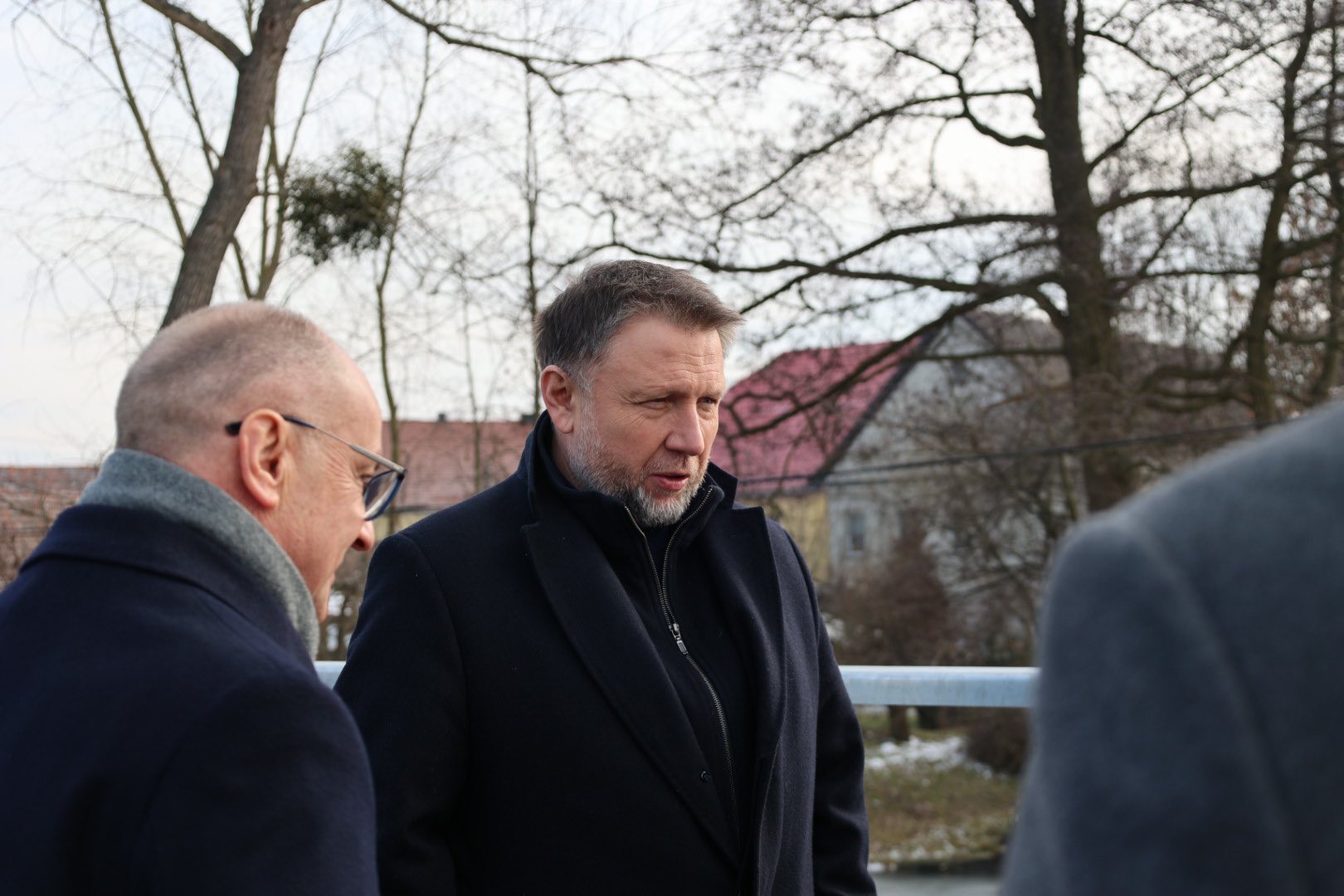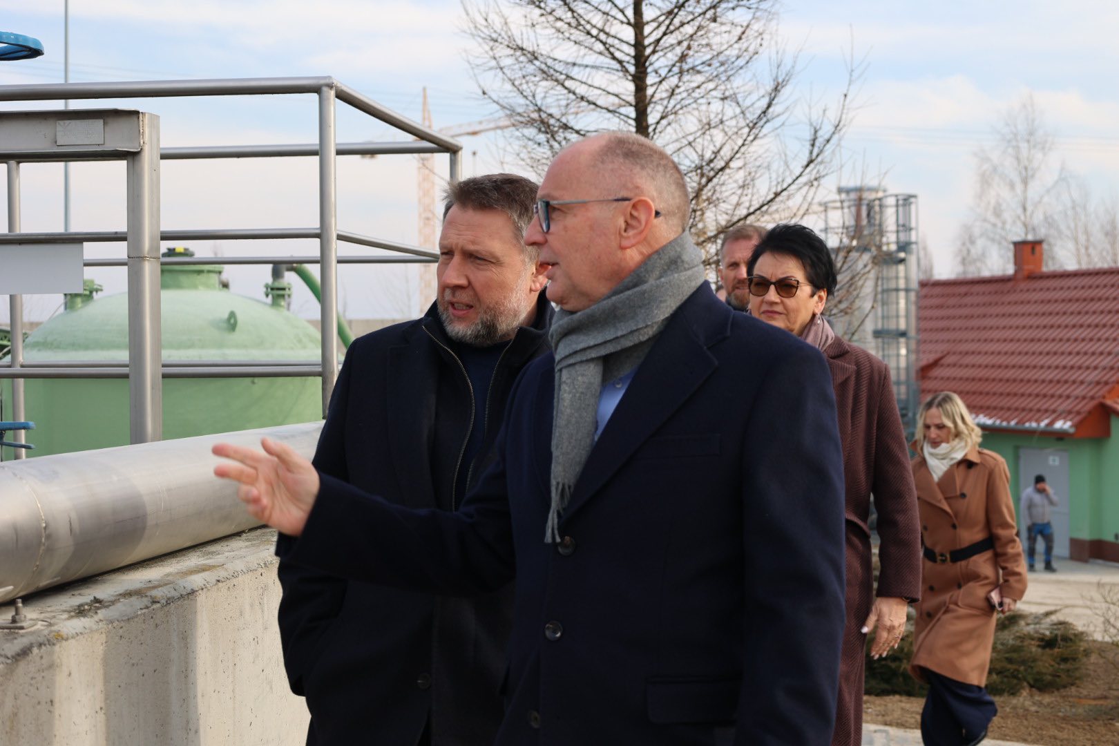 Minister Marcin Kierwiński, Magdalena Roguska oraz Monika Jurek Wojewoda Opolska sprawdzili efekty odbudowy oczyszczalni ścieków i mostu w Kantorowicach – obiektów zniszczonych podczas powodzi w 2024 roku.
