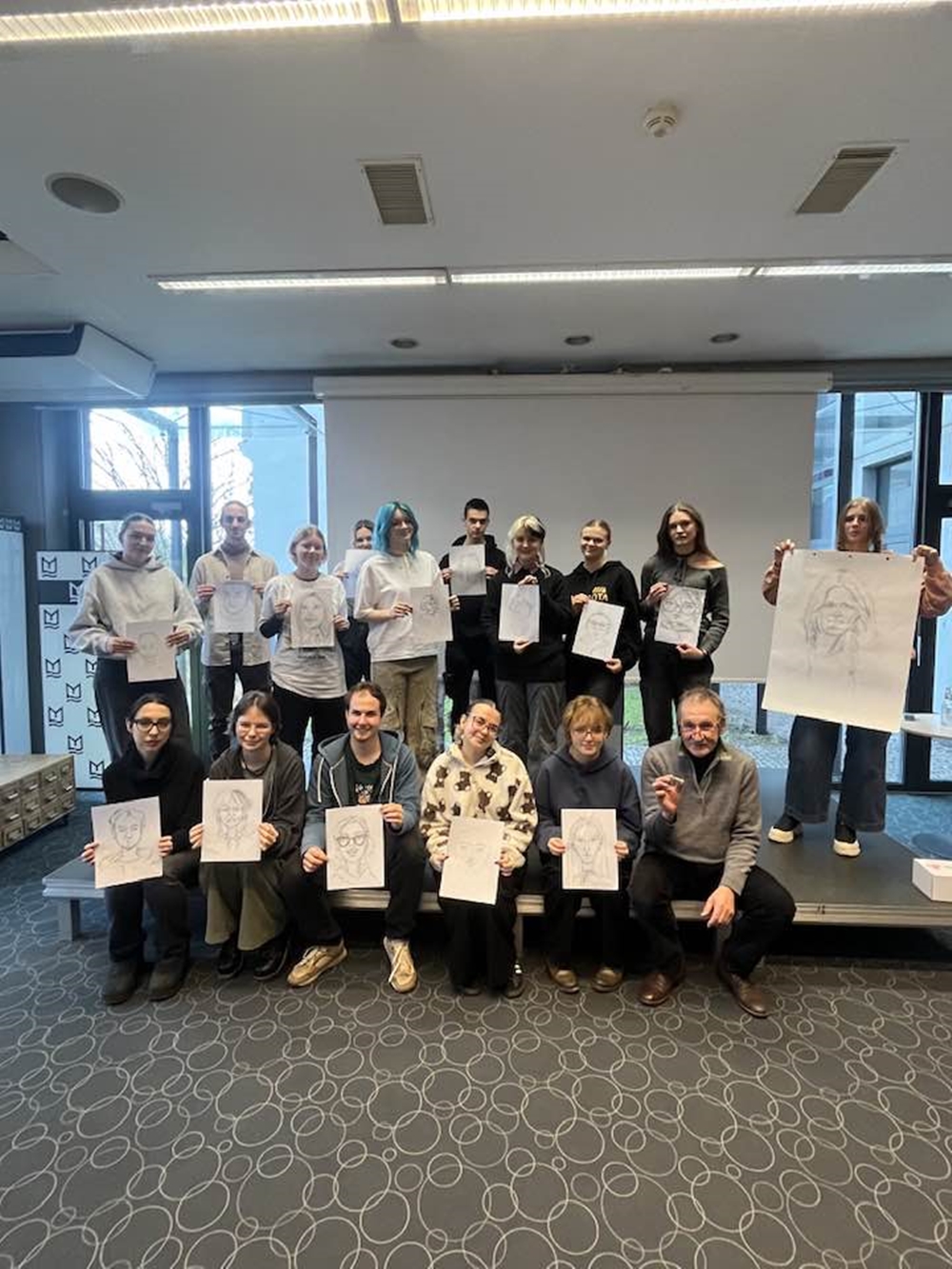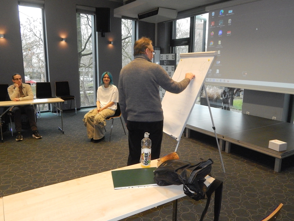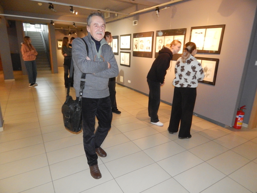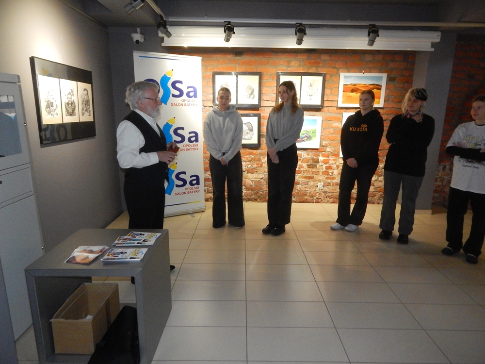 Drugi dzień Opolskiego Salonu Satyry OSSa’26 w Miejskiej Bibliotece Publicznej w Opolu. Warsztaty Karykatury Na Żywo prowadzi Jerzy Fedro – znakomity rysownik, karykaturzysta i grafik z Gubina.