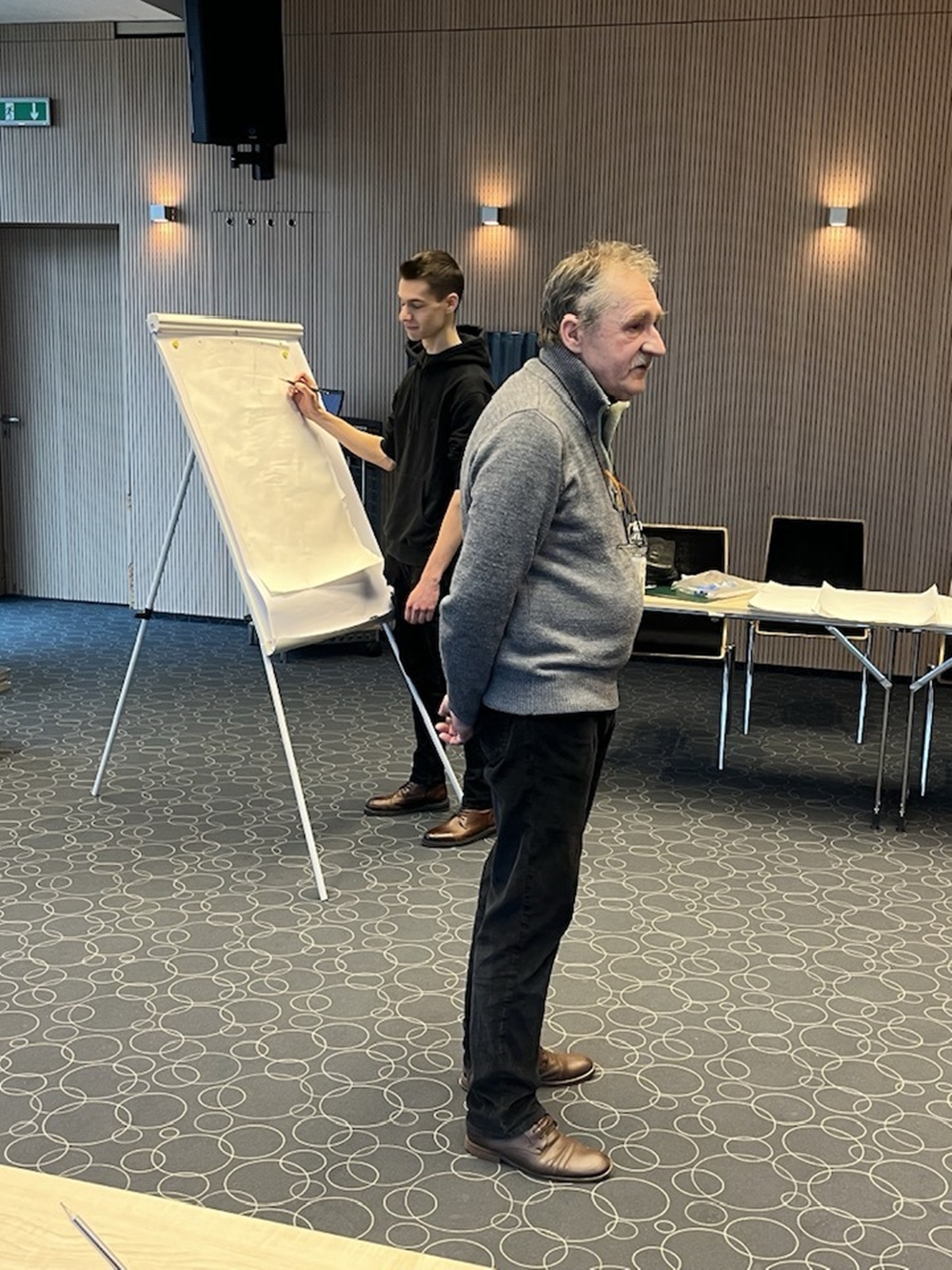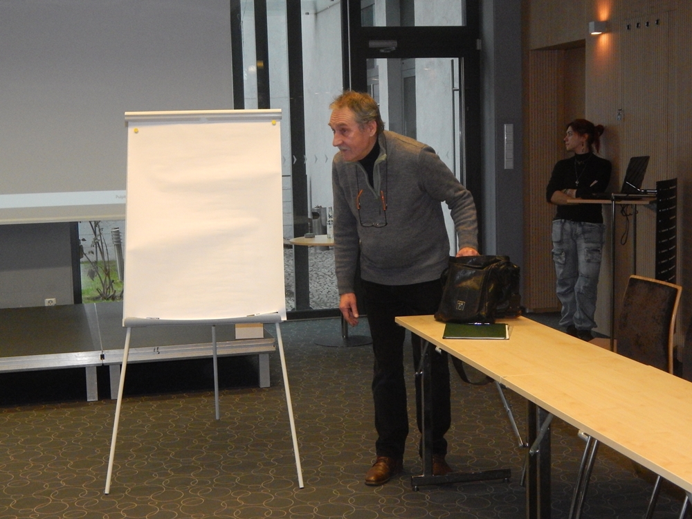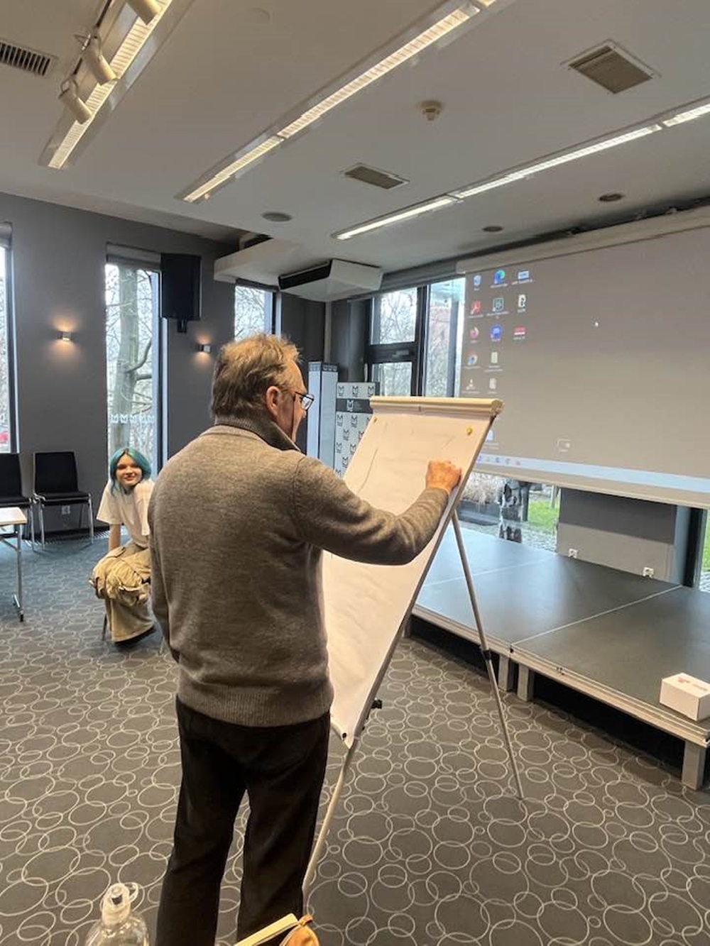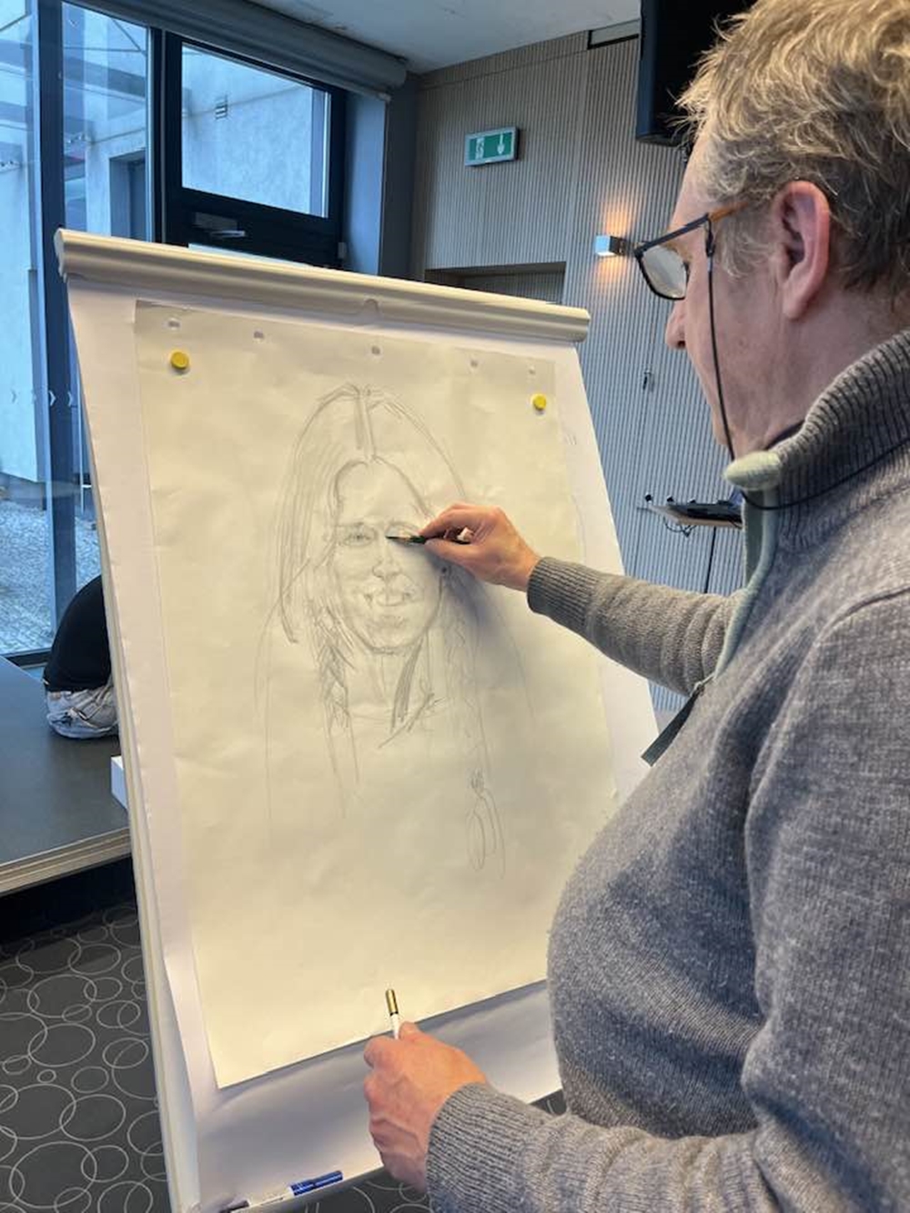 Drugi dzień Opolskiego Salonu Satyry OSSa’26 w Miejskiej Bibliotece Publicznej w Opolu. Warsztaty Karykatury Na Żywo prowadzi Jerzy Fedro – znakomity rysownik, karykaturzysta i grafik z Gubina.