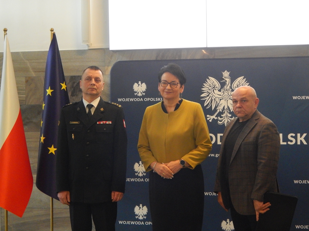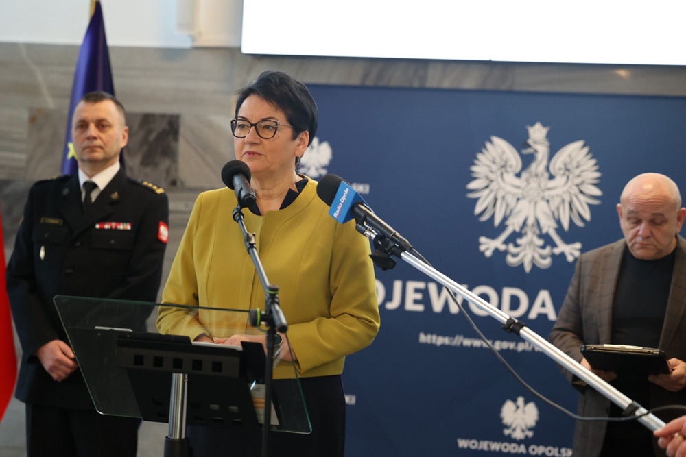 Podczas konferencji prasowej wojewoda opolska Monika Jurek, zastępca Opolskiego Komendanta Wojewódzkiego PSP st. bryg. Arkadiusz Kuśmierski oraz dyrektor Wydziału Bezpieczeństwa i Zarządzania Kryzysowego OUW Wojciech Grzybowski przedstawili szczegóły podziału i wykorzystania środków.