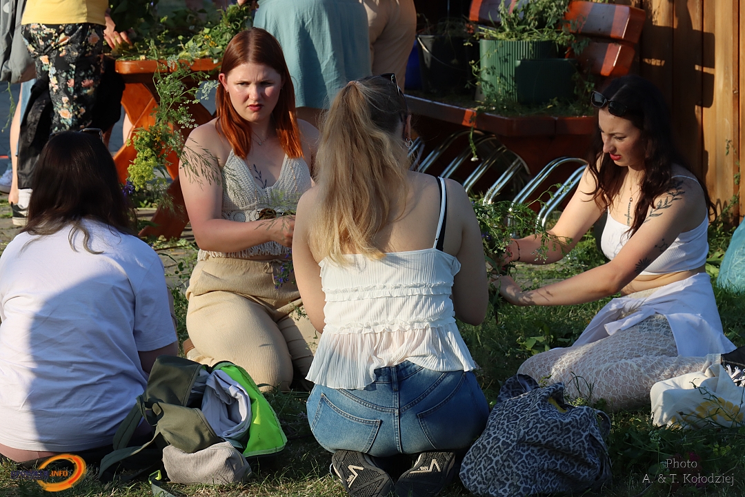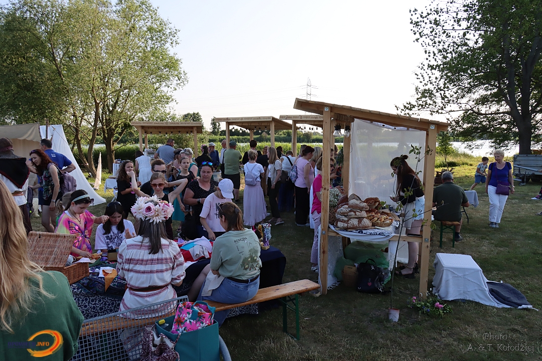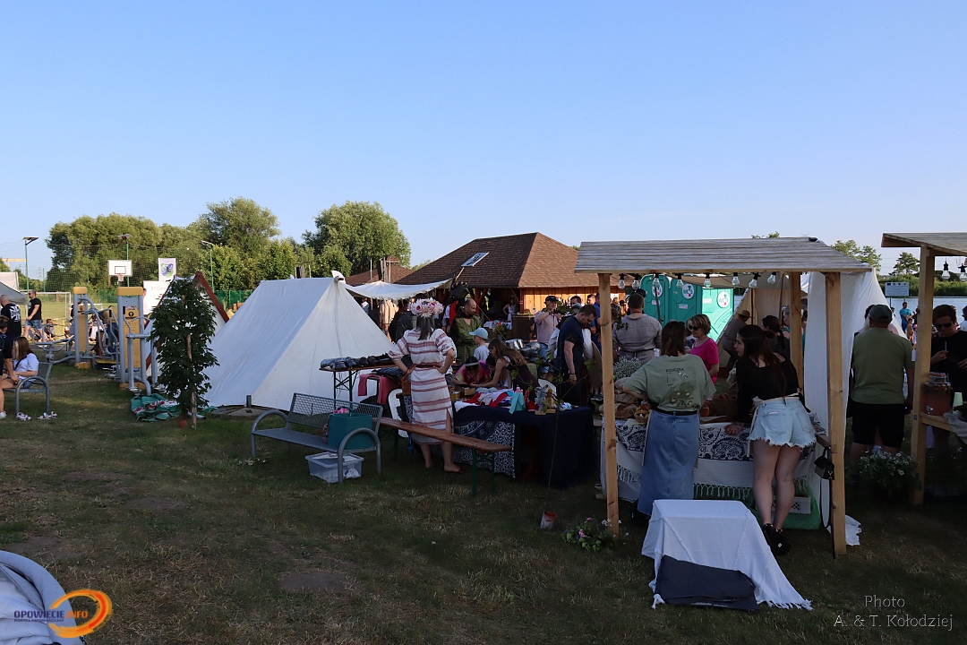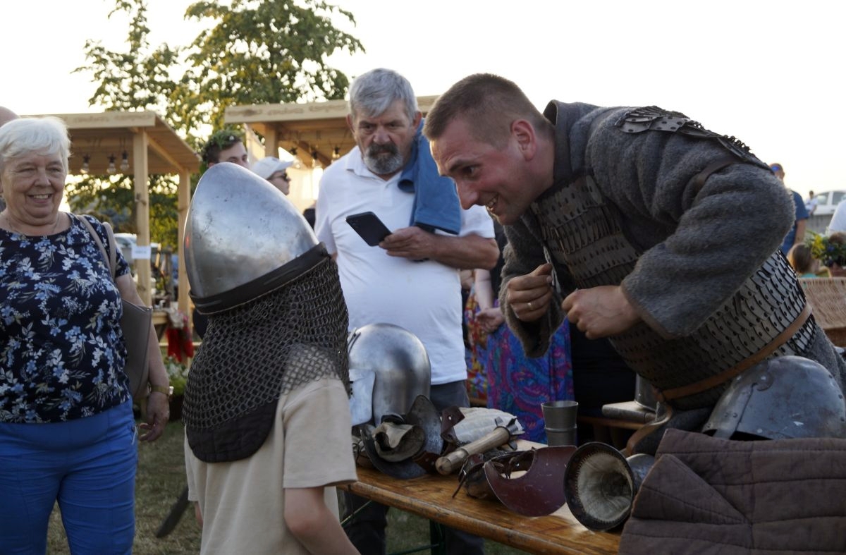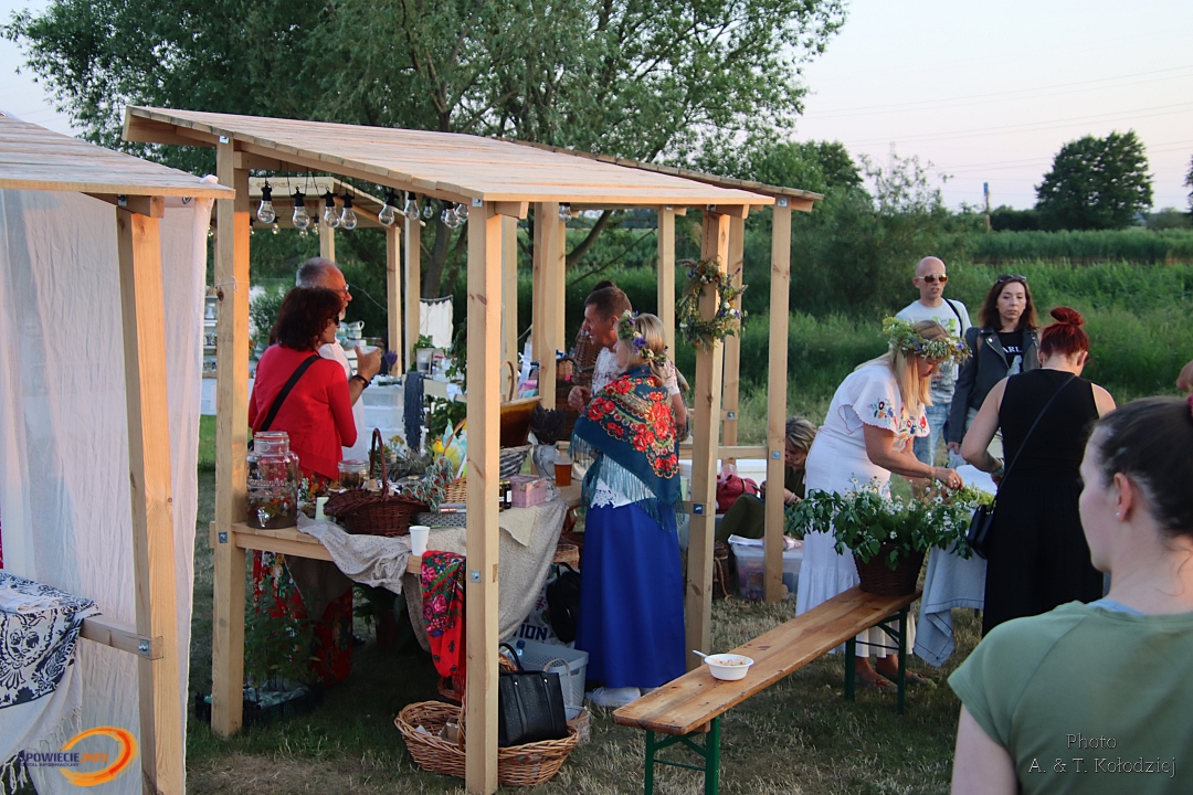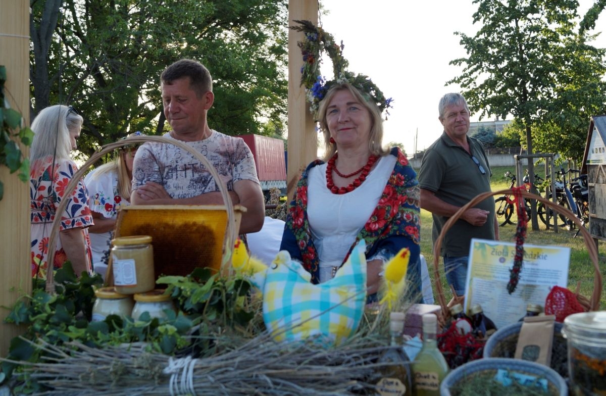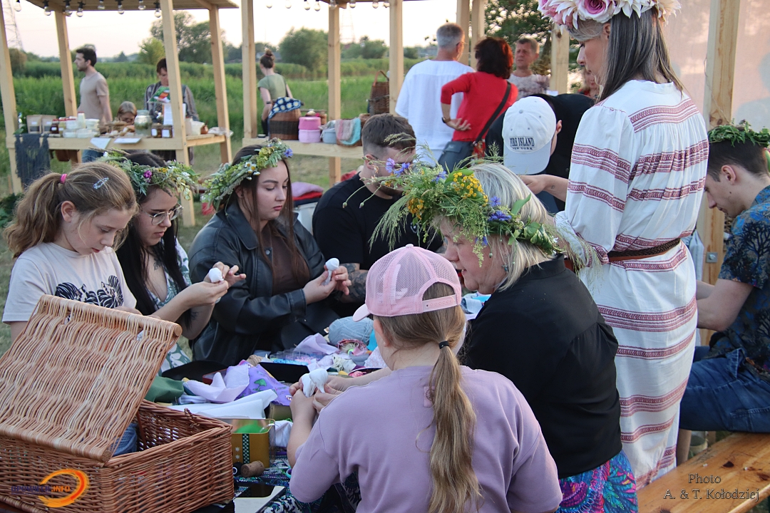 Tuż obok, na mini jarmarku świętojańskim, rozstawili się lokalni producenci, oferujący m.in. miody, sery, pieczywo, produkty ziołowe oraz wyroby wiklinowe i ceramiczne. Nie zabrakło też plecenia wianków, wspólnych tańców, a także nowości – warsztatów tworzenia motanek, czyli słowiańskich lalek mocy. To jedna z najstarszych słowiańskich tradycji, w której ręcznie robione lalki mają pomóc w rozwiązaniu jakiegoś problemu czy spełnieniu intencji. Warsztaty prowadziły Opolskie Dziołchy, które – z uwagi na ogromne zainteresowanie – rozpoczęły zajęcia jeszcze przed zaplanowanym startem.