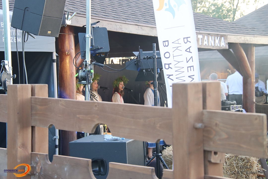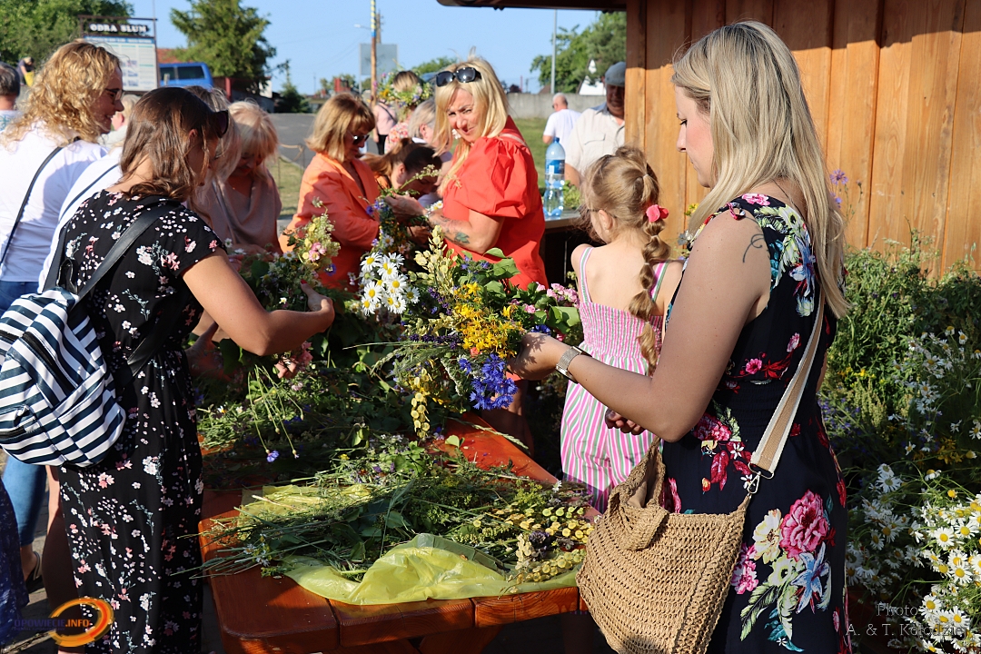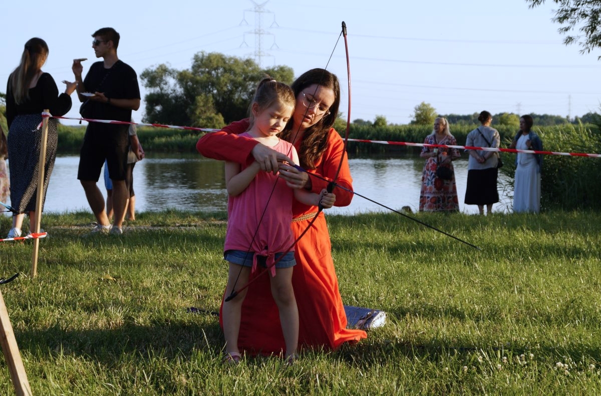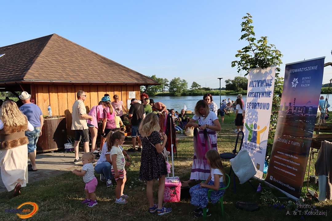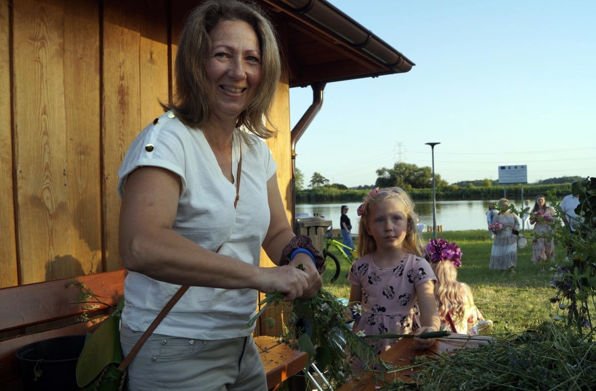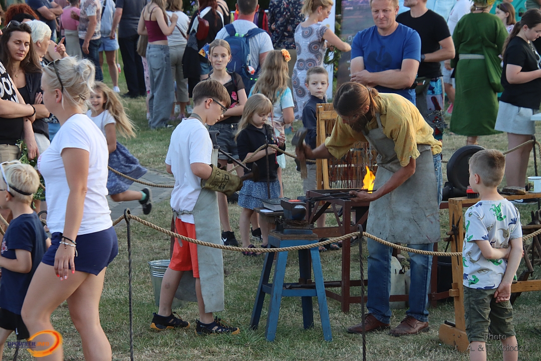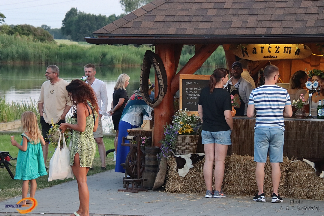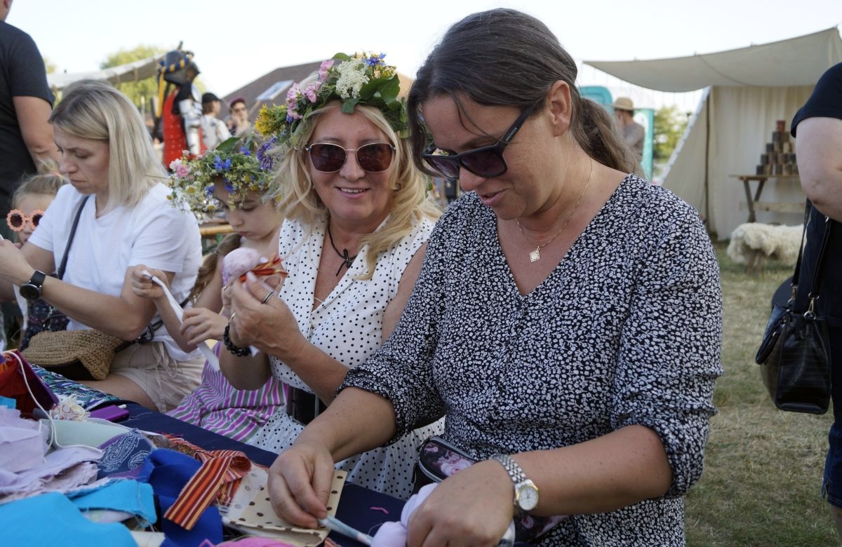 Tuż obok, na mini jarmarku świętojańskim, rozstawili się lokalni producenci, oferujący m.in. miody, sery, pieczywo, produkty ziołowe oraz wyroby wiklinowe i ceramiczne. Nie zabrakło też plecenia wianków, wspólnych tańców, a także nowości – warsztatów tworzenia motanek, czyli słowiańskich lalek mocy. To jedna z najstarszych słowiańskich tradycji, w której ręcznie robione lalki mają pomóc w rozwiązaniu jakiegoś problemu czy spełnieniu intencji. Warsztaty prowadziły Opolskie Dziołchy, które – z uwagi na ogromne zainteresowanie – rozpoczęły zajęcia jeszcze przed zaplanowanym startem.