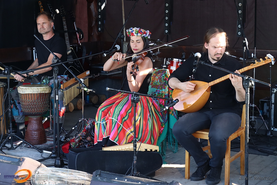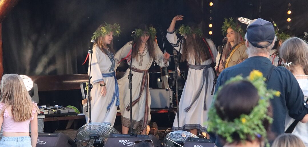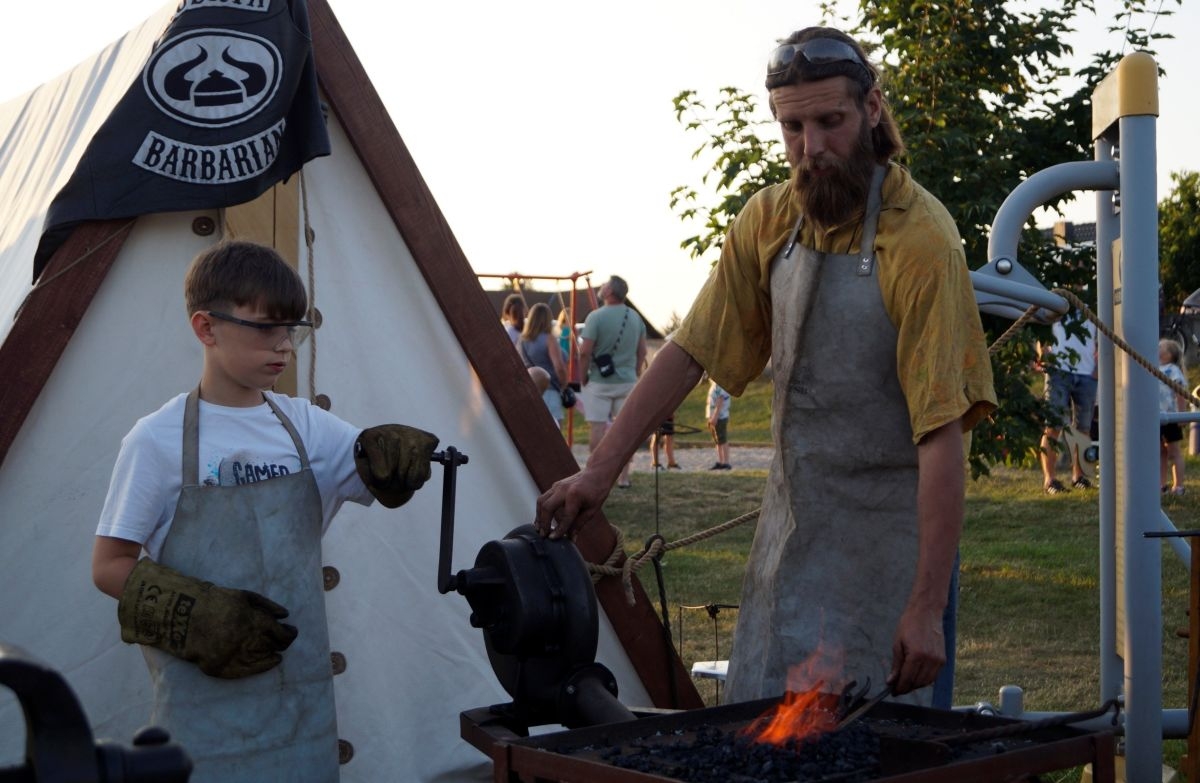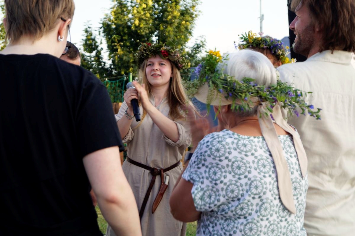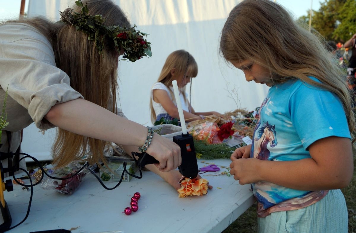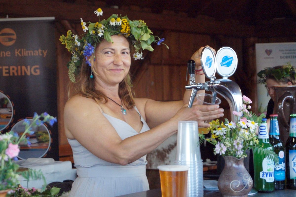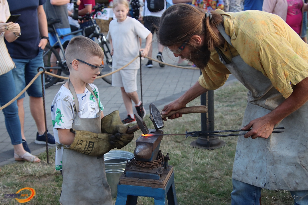 Tuż obok, na mini jarmarku świętojańskim, rozstawili się lokalni producenci, oferujący m.in. miody, sery, pieczywo, produkty ziołowe oraz wyroby wiklinowe i ceramiczne. Nie zabrakło też plecenia wianków, wspólnych tańców, a także nowości – warsztatów tworzenia motanek, czyli słowiańskich lalek mocy. To jedna z najstarszych słowiańskich tradycji, w której ręcznie robione lalki mają pomóc w rozwiązaniu jakiegoś problemu czy spełnieniu intencji. Warsztaty prowadziły Opolskie Dziołchy, które – z uwagi na ogromne zainteresowanie – rozpoczęły zajęcia jeszcze przed zaplanowanym startem.