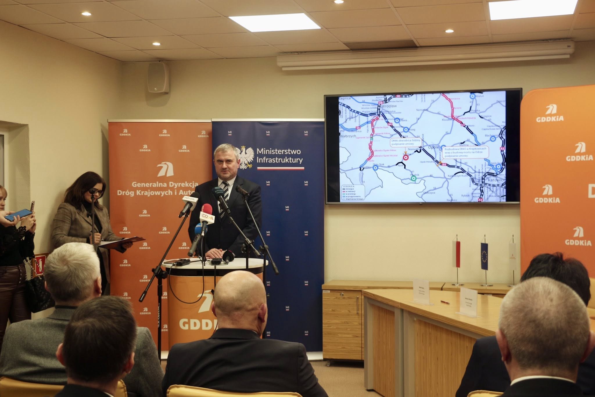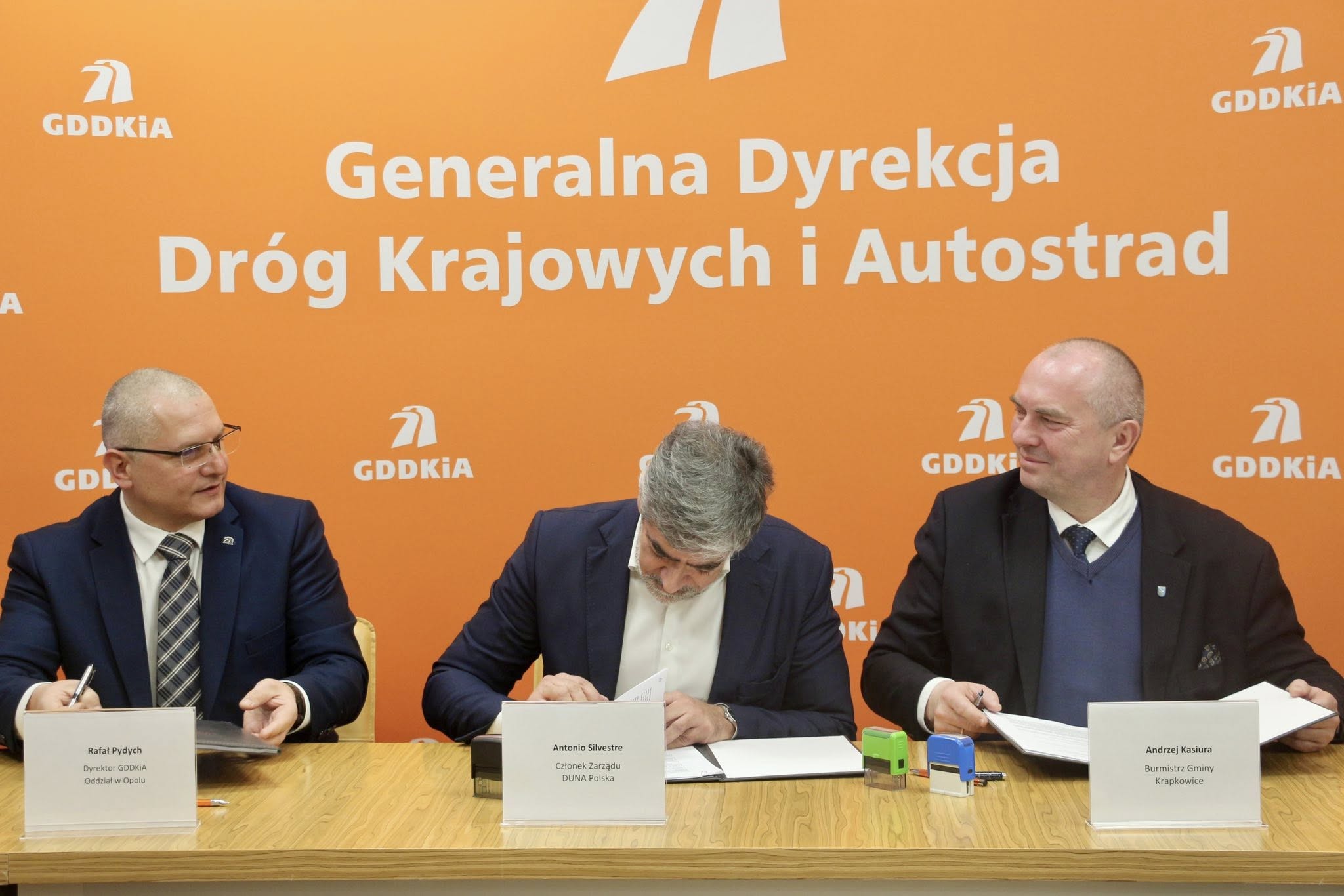 Jak poinformowała Wojewoda Opolska Monika Jurek, w siedzibie Generalnej Dyrekcji Dróg Krajowych i Autostrad w Opolu podpisano dziś umowy na realizację dwóch ważnych zadań infrastrukturalnych. W wydarzeniu uczestniczyli m.in. wiceminister infrastruktury Stanisław Bukowiec oraz minister Tomasz Siemoniak.
