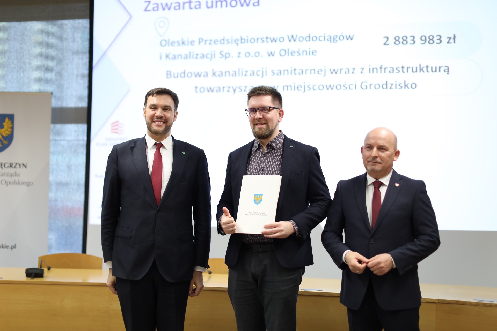- Oleskie Przedsiębiorstwo Wodociągów i Kanalizacji Sp. z o.o. w Oleśnie – Budowa kanalizacji sanitarnej wraz z infrastrukturą towarzyszącą w miejscowości Grodzisko – 2 883 983 zł