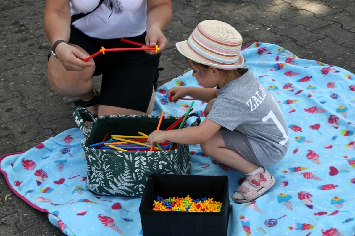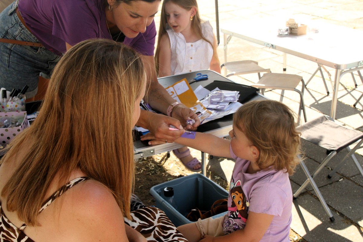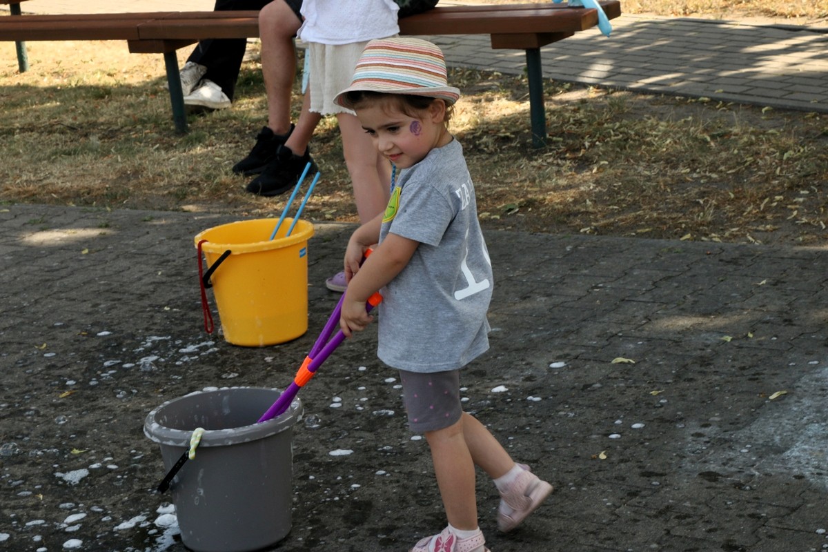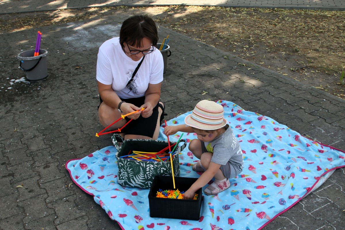 Na placu obok świetlicy wiejskiej dzieci mogły zrobić sobie brokatowy tatuaż czy zatańczyć z jednorożcem.